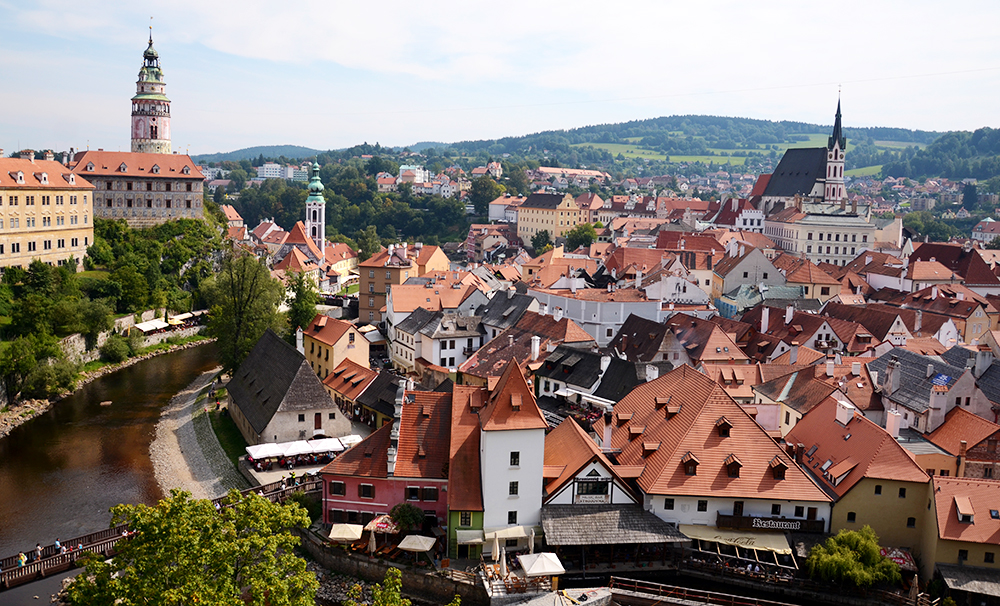 Tan importante como el ecléctico patrimonio histórico –que va desde la Edad Media hasta el siglo XIX– y su buena conservación, diría que en el caso de Český Krumlov pesa su ubicación. A unos 500 metros sobre el nivel del mar, entre los bosques del sur de Bohemia y rodeada de pequeños promontorios, su casco histórico se articula entorno a los meandros del río Moldava, todavía joven junto a la selva bohemia o Šumava, en el idioma original. Un enclave especial admirable desde los numerosos miradores disponibles.