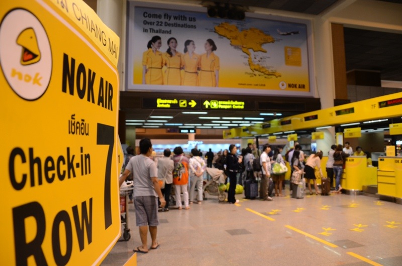 A pesar de que sabía a lo que venía, de la preparación mental y esas cosas; de haber leído mil y un blogs de viajes y visto tropocientos reportajes de TV sobre Tailandia, la realidad siempre termina por imponerse, sin entender de manuales de consulta. Así, la sensación a nuestro aterrizaje en Bangkok ha sido de desorientación total, por momentos rayando la frustración -sentimiento por otra parte obligado en cualquier viaje que se precie-. Es lo que tiene el no poder leer ni siquiera los carteles -por mucho que los acompañen normalmente de traducción al inglés- o que te aborden sin parar toda clase de personitas sonrientes, a las cuatro de la madrugada, para ofrecerte mil y un servicios, que además son todos menos el que andas buscando y no encuentras. Al final, y después de varias vueltas en círculo por el aeropuerto y de estar a punto de errar el tiro, hemos dado en el clavo y hemos conseguido embarcarnos en el autobús gratuito en dirección al segundo aeropuerto de Bangkok. El pasarse por Don Muang Airport ha sido porque a última hora hemos cambiado de planes y optado por subir a Chiang Mai en avión. Por un tema de cansancio, pero sin descuidar por ello la economía. Y es que, a parte de canjear un trayecto de diez horas en bus por uno de 1,5 en avión, lo hemos hecho pagando solamente unos 25 euros de más entre Mariola y yo. 75 euros nos han costado en total los dos billetes, mientras que el enlace en bus entre aeropuertos nos ha salido gratis. La culpa de todo la tiene el Ryanair de turno, una aerolínea de nombre Nokair -menos conocida que Air Asia, pero algo más barata-. Eso sí, a diferencia de Ryanair, estas chicas de amarillo -color de la ropa- que se parten el culo de la risa cuando te despachan, nos han dejado facturar gratis 15 kg por persona, nos han facilitado una wifi de acceso libre junto a la puerta de embarque y nos han tratado como personas. Así que, señores de Ryanair, aprendan por favor. En fin, empiezo a bostezar. Tras unas 30 horas de camino y el cuerpo atolondrado por los cambios de hora, me pirro por coger una cama. A ver si hay suerte y arreglamos rápido el asunto al llegar a Chiang Mai.