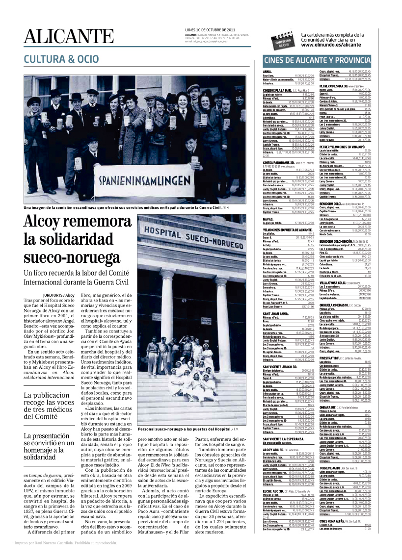 Pese a no poder acudir a la presentación, esta semana pude contactar con el historiador alcoyano Àngel Beneito, que acaba de publicar un segundo libro sobre el Hospital Sueco-Noruego que se montó en la ciudad durante la Guerra Civil española.
