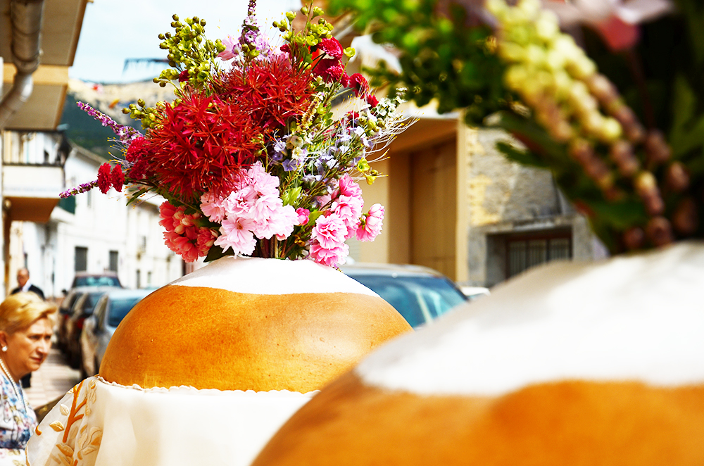 Feia anys que no gaudia d’esta xicoteta festa, però el cap de setmana, per força i fester major, he tingut la sort de poder retrobar-me amb ella. D’açò en diuen al meu poble la Festa del Pa Beneït, es celebra en honor al patró local Sant Gregori i teniu tots els detalls ací mateix: o bé en el breu text penjat al web de Gent de la Torre o bé en aquest reportatge de rigor publicat fa uns dies al Diario Información. En qualsevol cas, ja vos avance que es tracta d’una singular, preciosa, delicada ofrena al patró de la Torre de les Maçanes que ve celebrant-se cada 9 de maig des de fa segles. Els pans van eixir al carrer divendres i diumenge passat, en un dia de sol i llum que més be semblava d’estiu; jo ho vaig veure així: