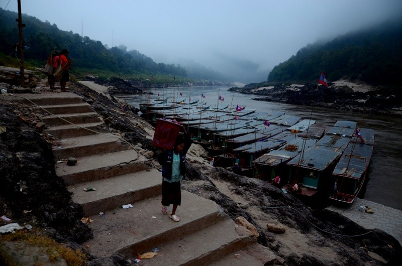A reveure Tailàndia, sabguaidi Laos. Dos dies i mig de camí després del darrer post, comencem ara el segon dia de viatge en vaixell pel riu Mekong, al seu pas pel nord de Laos. A diferència de Tailàndia, aquesta no és terra de homes lliures, sinó resquici de República Popular, altre temps tros d’Indoxina, el país més despoblat i el més pobre, dels quatre que anem a trepitjar en aquesta breu incursió pel sudest d’Àsia. Sí, curt i superficial, així veig en estos instants el nostre viatge d’ara després de compartir el sopar d’anit amb quatre viatgers de volta al món, motxilla a l’esquena i presupost ajustat, de veritat. Interessants històries, interessants perspectives. Amb tot el temps del mon per davant. Bé, recuperant el fil d’aquest post, escriure aquestes línies pentinat per la boira i el vent suau que bufa per sobre del riu Mekong al dematí és senzillament recomfortant. El nostre vaixell, com la immensa majoria dels que remunten i abaixen el riu en aquestes latituds, és una embarcació estreta i allargada, sense tancaments laterals però amb un sostre de xapa que ens protegeix del sol. Tot rovell i bona voluntat. Seients nous recentment col·locats, que semblem haver arribat aquí arrencats d’algun tren retirat de la circulació a Europa. De malnom, el vaixell és conegut com slow boat, pel que podeu imaginar que la velocitat no és un tema prioritari. De fet, si comentava que estem al segon dia de viatge és, lògicament, perque la d’avui és la segona ració d’un mateix plat: set hores de trajecte, mentre hi ha sol, durant dos dies fins completar la unió entre el nord de Tailàndia i la ciutat sagrada de Luang Prabang, segurament un dels tresors més interessants de la zona. En total, som unes 180 les persones que estem fent al torn aquest recorregut de dos dies pel riu, en dos aparells. Al nostre, com a l’altre, viatgem uns 70 estrangers, per només una vintena de locals. No sé com ho hauran pagat ells, a nosaltres no ens ha costat barat, si tenim en compte que hem pagat 240.000 kips per cap -uns 24 euros-, segurament més del que guanye un cap de família en una semana. Pel que fa a magnituds, en trajectes com aquest són totalment secundàries. Però per a que vos feu una idea, estem parlant d’una distància apoximada de 200 quilòmetres, recorreguts al segle XXI de la mateixa forma que un parell de segles enrere. Per acabar, aprofitaré la menció temporal per a tractar de dibuixar els pobles que ens han eixit al pas des que vàrem entrar al país, ahir al matí. El primer fou Huay Xai, porta d’entrada a Laos via Chiang Rai. Aquesta petita ciutat, abocada al riu com totes, s’ha convertit en una parada obligada per a motxillers vinguts de tot el planeta. O el que és el mateix, va farcit de cases d’hosts i restaurants al carrer, mentre el punt de control fronterer i l’oficina de canvi són una autèntica olla a pressió als matins. Tenen una oficina bancària amb caixer automàtic, símptoma inequívoc de modernitat, si bé el que realment despertà el meu interés va ser veure per primera vegada els mostradors de bolleria francesa -influència del passat colonial- al carrer, els bitllets de 100.000 kips -un euro-, així com els carrers sense asfaltar atrafegats a parts igual pel pas de camions, tuk-tuks, persones, gossos o gallines. Ja veieu, salt enrere en el temps, malgrat la contaminació extrema provocada per l’arribada desmesurada del plàstic, els turistes i les operadores telefòniques amb les seues xarxes de wifi. Pel que fa a la primera aturada, el poble de Pak Benk no té cap mèrit més enllà d’ubicar-se a la llera del riu en meitat del camí, pel que s’ha consolidat com parada obligada d’estos vaixells per a fer nit. Ofereix un carrer ple de Guests Houses, restaurants i supermercats en la seua versió més primitiva. Molta misèria, ronya, falsos somriures i uns preus unflats per a treure profit de la situació. L’últim poble que voldria comentar, és el que no hem pogut visitar: les desenes de viles apegades al riu que hem creuat pel camí. Aldees sense accés per carretera, cases de bambú, horts als bancs de sorra del riu, pesca entre les roques. Molt maco i pur, vist en ruta. Bé, són quasi les cinc de la vesprada, i per fi he acabat de redactar aquesta entrada a trompicons durant el viatge, que sembla no acabar mai. Ho farà aviat, ens acostem a Luang Prabang.