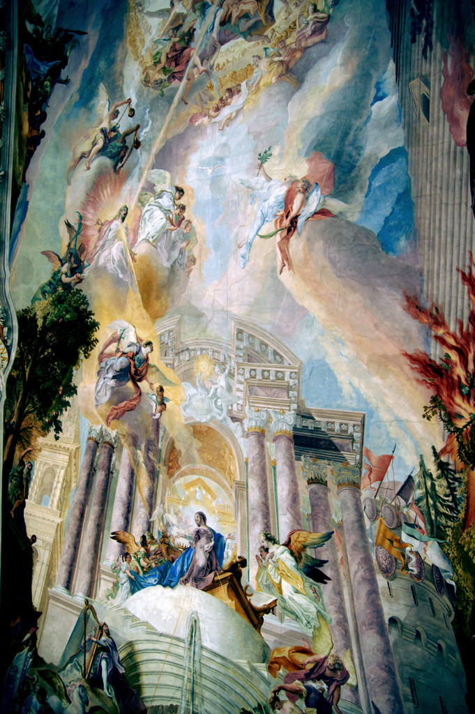 D’un temps ençà la xicoteta església de Sant Joan Nepomucè a Munic s’ha convertit en un monument de referència, un petit tresor que no falta en cap de guia. Els que viuen a Baviera o coneixen la ciutat i encara no saben ben bé de què parle només cal afegir un parell de paraules: Asamkirche; rococó. Però els germans Eguid Quirin i Cosmas Damian Asam, que van construir-se aquesta capella com un temple privat, van deixar el seu segell durant el segle XVIII en bona cosa de construccions religioses arreu de Baviera, com també a territoris veïns com Bohèmia o el Tirol. L’altre dia a Ingolstadt, ciutat de l’Alta Baviera més coneguda hui per ser la seu dels quarters generals d’Audi, em va sorprendre entropessar precisament amb l’Asamkirche. La seua pròpia. En aquest cas, el nom formal és el de Santa Maria de Victòria i és tracta d’una petita construcció certament singular, com no podia ser d’altra forma. Oculta en un carreró del centre i vinculada a la Congregació Mariana, és una església barroca sense torres, exempta. Des del carrer el color carabassa i la decoració de la façana criden l’atenció del vianant, tot i que és una vegada a dins quan hom queda realment sorprès. Cosmas Damian és l’autor de l’enorme fresc de 42 x 16 m que cobreix tot el sostre i que està dedicat a l’Encarnació de Crist.
