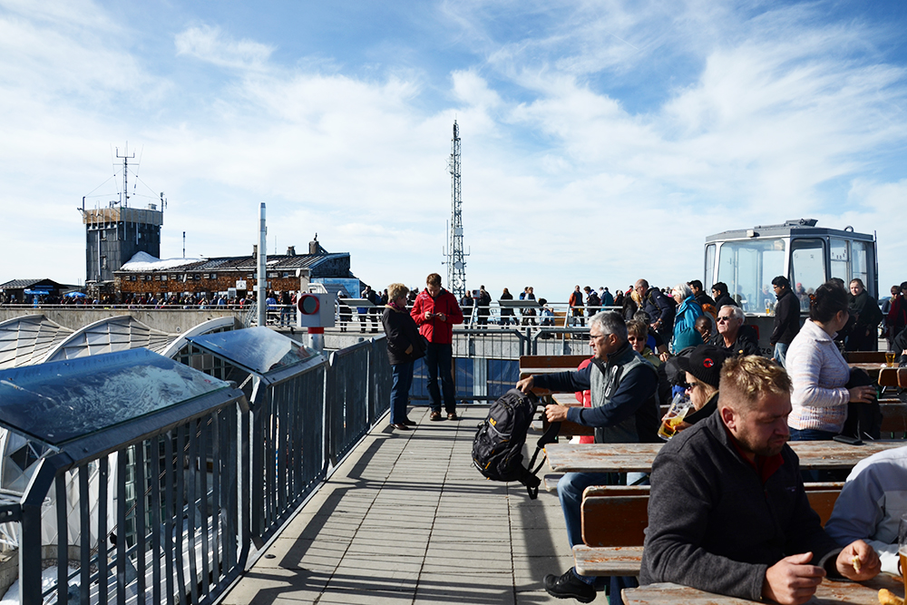 Si l’altre dia publicava un post sobre com pujar caminant al pic més alt d’Alemanya, aquest és simplement l’altra cara de la moneda. O una entrada dedicada a explicar com fer el mateix cim sense despentinar-se. Per facilitats no és: com recordava ara fa uns dies el Zugspitze, Pic del tren, és una muntanya humanitzada des de fa temps, amb una plataforma a dalt de tot que inclou allotjament, botigues i biergarten.